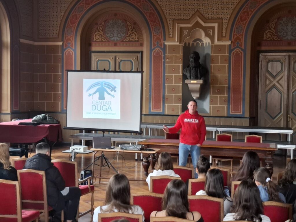 Циљ предавања био је да се млади упознају са широким спектром последица и опасности које са собом носи злоупотреба психоактивних супстанци.